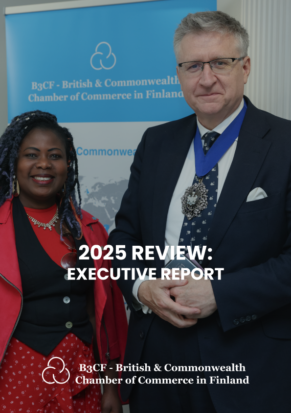 The British & Commonwealth Chamber of Commerce in Finland (B3CF) is a non-profit organisation that connects businesses, professionals, and institutions across the UK, Finland, and the wider Commonwealth. We facilitate trade, investment, and professional networking through events, partnerships, and member-to-member opportunities.